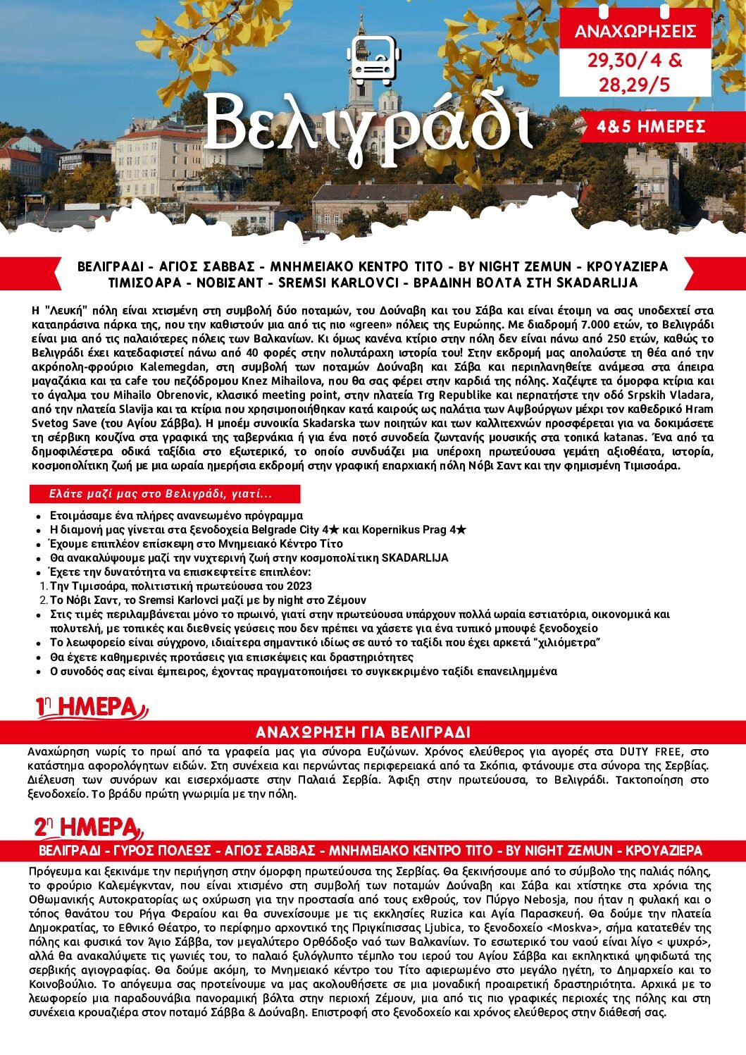 Γιατί να ταξιδέψετε μαζί μας στο Βελιγράδι…